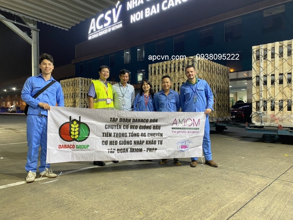 Đây là 07 chuyên cơ heo giống cao sản được Tập đoàn Dabaco nhập trực tiếp từ Tập đoàn Axiom - Pháp. Công ty Cổ phần XNK Châu Á Thái Bình Dương đại diện cho Tập đoàn Axiom tại Việt Nam đã phối hợp với đơn vị nhập giống làm các thủ tục nhận hàng để đưa con giống về trại nuôi. Mục đích chính của việc nhập khẩu này là cung cấp con giống tốt nhất để Tập đoàn Dabaco sản xuất ra con giống năng suất cao, phục vụ cho sản xuất giống heo trong nước.
