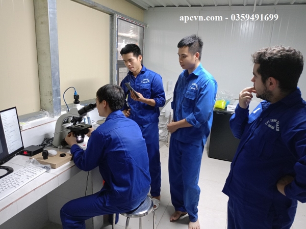 Tiến sĩ Carlos (chuyên gia Công ty Kubus S.A) cùng đội ngũ kỹ thuật của công ty APE tiến hành bàn giao và chuyển giao công nghệ của hệ thống OCSA cho trại Dabaco Thanh Hóa.